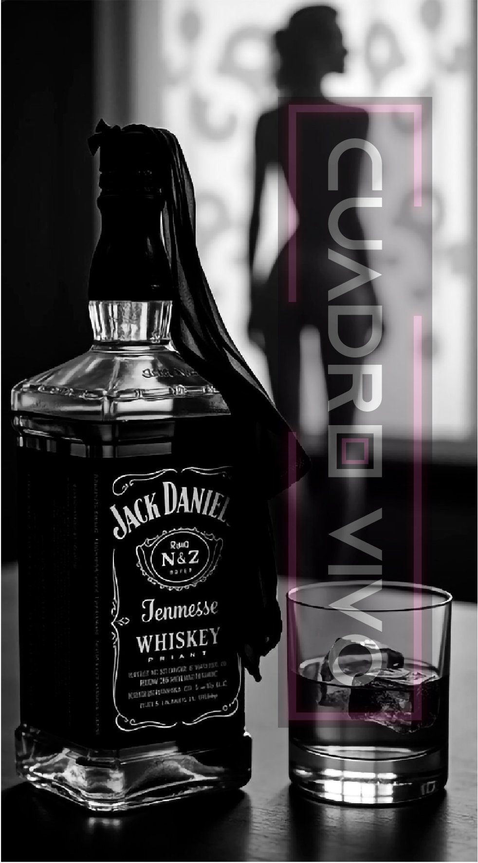 Este cuadro fusiona la estética noir, la sensualidad sugerida y el carácter inconfundible de Jack Daniel’s.