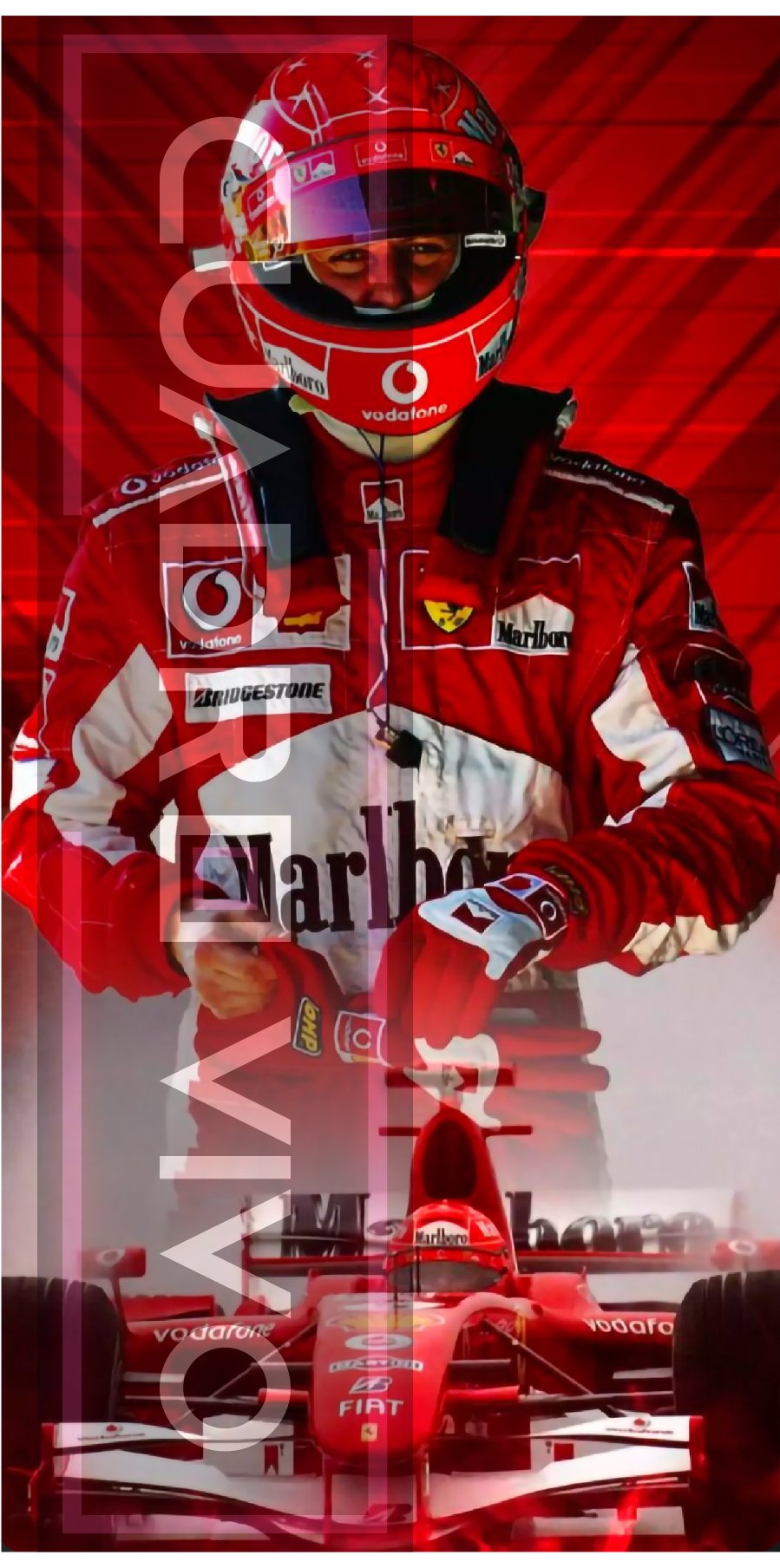 “Schumacher Legend” es un homenaje visual al piloto que cambió la historia de la Fórmula 1. Un lienzo cargado de energía, poder y elegancia roja Ferrari, creado para quienes sienten que la velocidad también es una forma de vida.